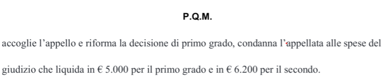 In questa pagina troverete alcuni stralci dei dispositivi in cui i Giudici hanno condannato, con coraggio, la controparte alla Refusione delle Spese di giudizio.